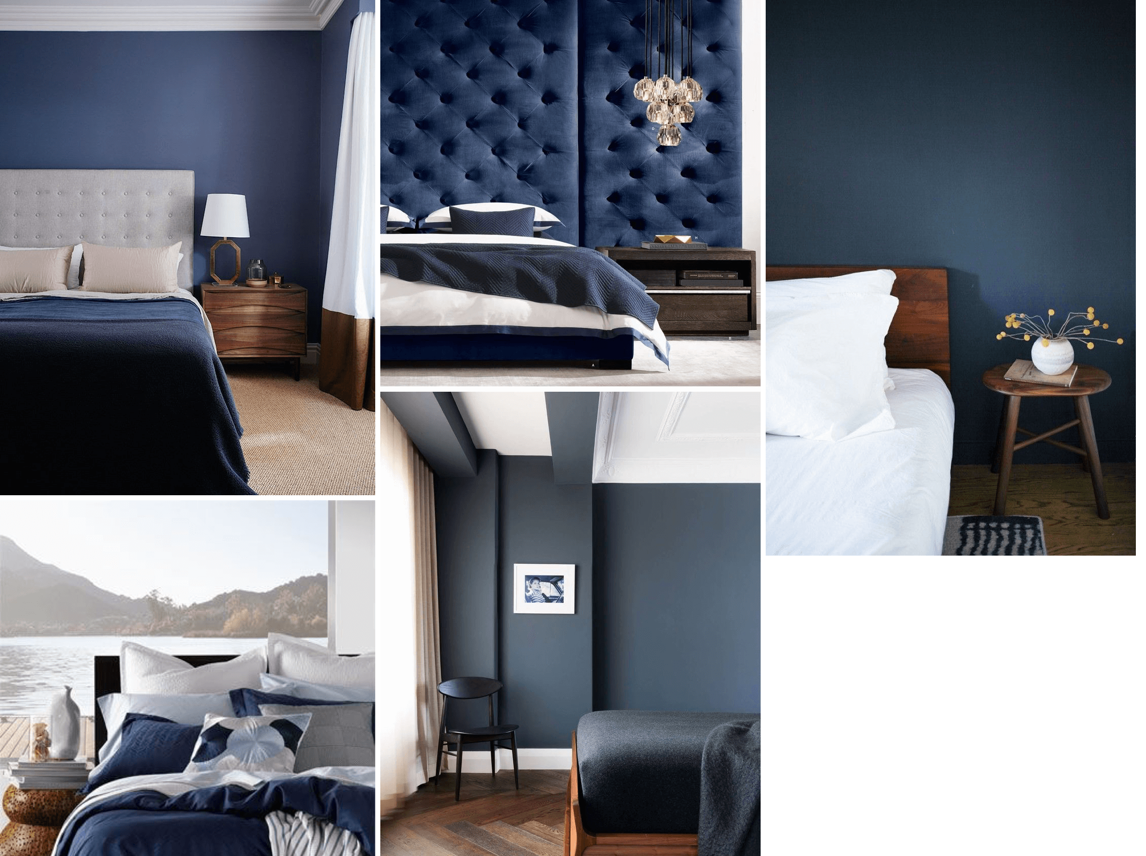 استخدام درجات الازرق القاتم يعطي الشعور بالدفء في غرفة النوم.