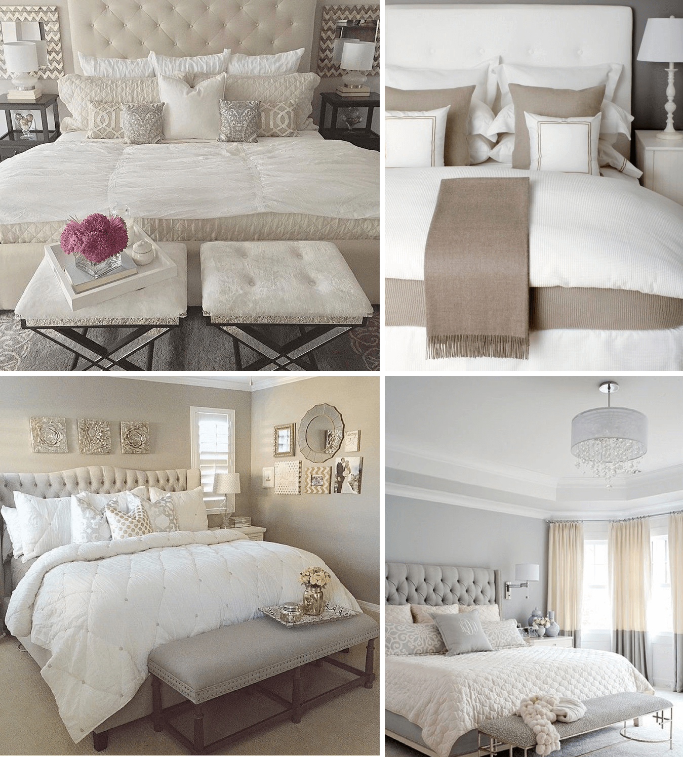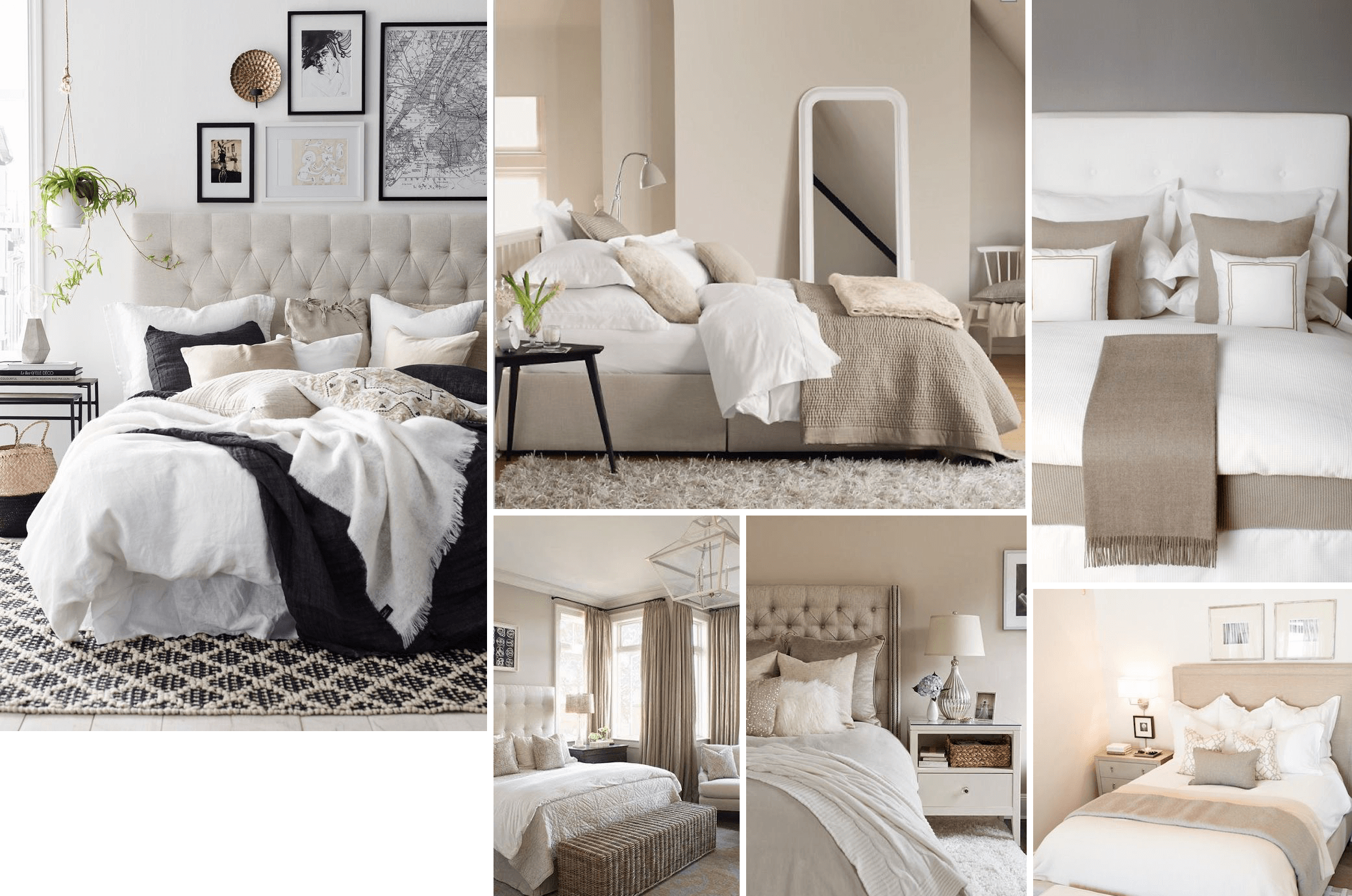 اللون الخامس هو اللون المحايد و هذا ما انصح به انا شخصياً. البيج، الكريم و درجات الرمادي و البني. في هذه الالوان راحة تااااامة لأي شخص في الغرفة و في الخصوص اذا كانت هذه الغرفة الرئيسية التي تجمع اثنين في غرفة واحدة. الالوان المحايدة مع تطعيمة كل فترة في الاكسسوارات بالوان مميزة تعطي لمسة من الدفء.