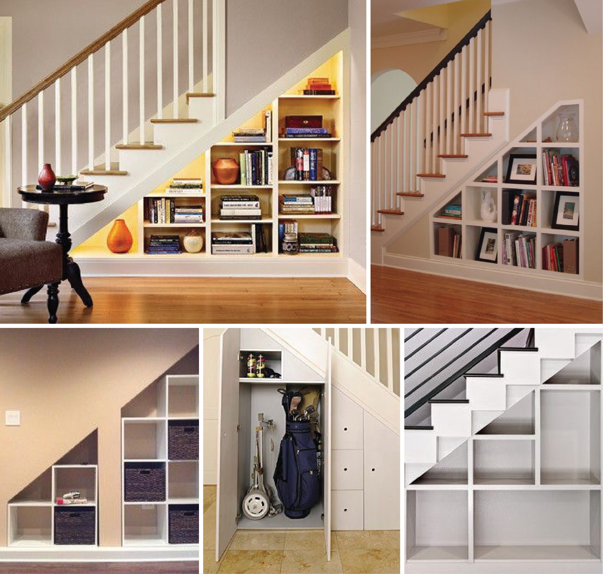 غالبا ما توجد مساحات مهملة تحت الدرج وغير مستخدمة وهي أماكن تجمع الأوساخ ولكن إذا كان لديك أطفال وهذه المساحة كبيرة بشكل كافي فإنك يمكنك أن تخفيها بوضع خزانة تحتها، وكذلك تستخدميها، وإذا كانت هذه المساحة غير كافية لتركيب أدراج أو أرفف، فقط قومي بإغلاقها واستخدمي هذا المكان لتخزين الأغراض النظيفة أو أي أشياء أخرى تفكري فيها، وفي جميع الأحوال، أوصيك دائما باستخدامها قبل أن تجمع الغبار ويملأها.